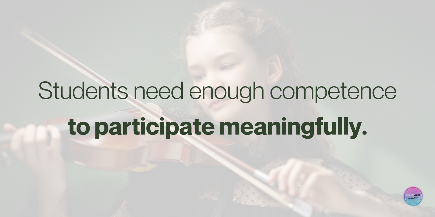 When students feel competent, they tolerate demand more easily. They receive more recognition. Music-making becomes more enjoyable. They’re more likely to trust their teacher and surround themselves with positive peers.