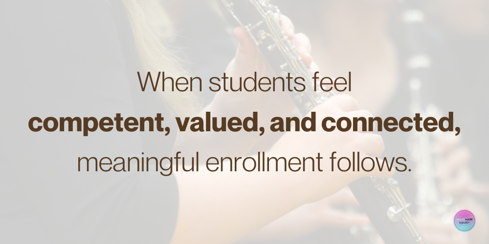 Building enrollment and strengthening retention takes time. There’s no overnight solution. But if we create programs where students feel competent, valued, and connected, meaningful enrollment follows.