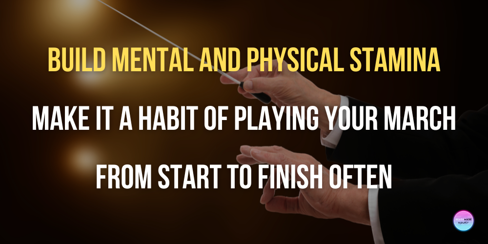 Unlike your average concert selection—where the orchestration from passage to passage might be slimmer, resulting in multi-measure rests more often—marches commonly require every section to play the entire time. This can lead to endurance issues, both physical and mental.